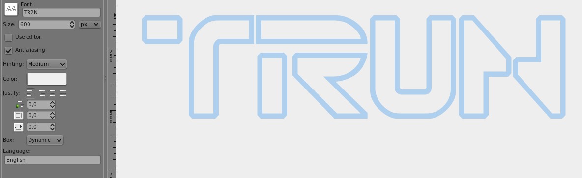 In Gimp I select the text tool with the previously downloaded typography that is very similar to TRON.